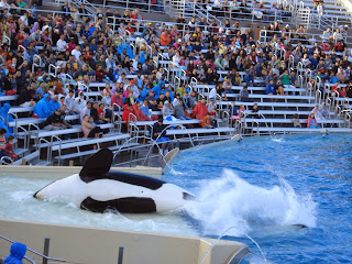 The Bear and I went to SeaWorld for Thanksgiving. due to some mad traffic, a car fire, and more traffic we didn't get to the park until around 12. We showed up to the park and the guy at the gate was having a hard time scanning my bar code for my ticket so I could get the free parking. So he signed me in as his guest, and let us park up front for free!!! sweet! We were supposed to go hang out with our friends and Baby Bear's girlfriend, but since we were so late we only got to go see the penguins and then they had to leave.